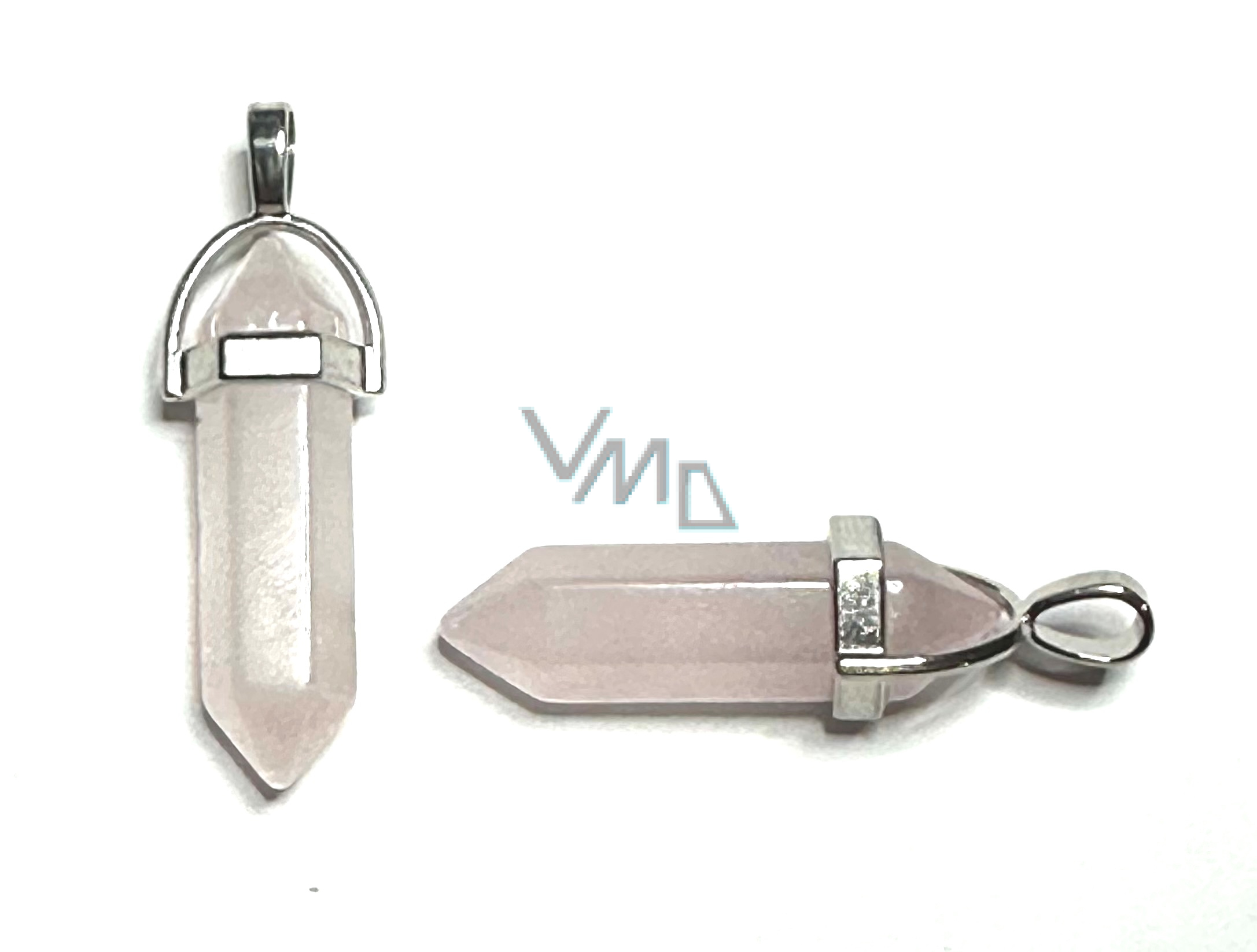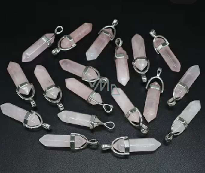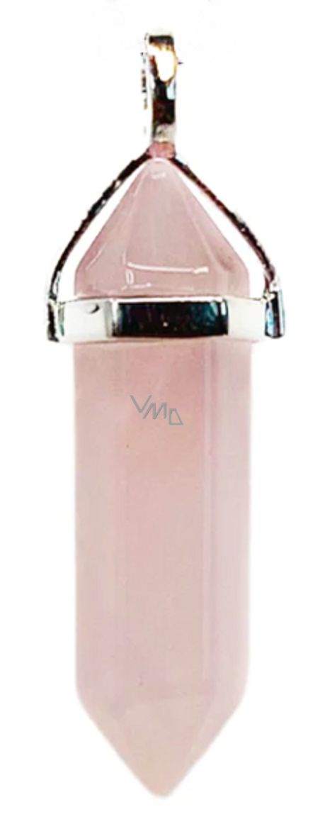 Wahadło różowego kwarcu sześcioboczny pryzmat naturalny kamień 41 x 13 mm, kamień miłości