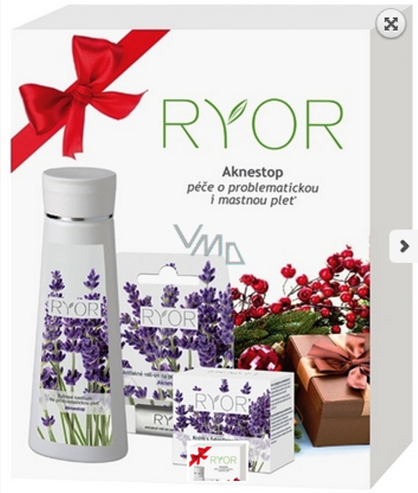 Ryor Aknestop Bylinné tonikum na problematickou pleť 200 ml, Krém s fytosfingosinem na problematickou pleť 50 ml, Antiakné roll-on na problematickou pleť 5 ml, kosmetická sada