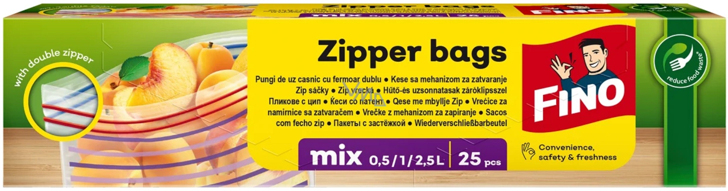 Fino Zipper Bags woreczki są odpowiednie do przechowywania wszystkiego, co chcesz bezpiecznie zamknąć. Wygodna obsługa, wytrzymałość i zachowanie świeżości dzięki podwójnemu zamknięciu.