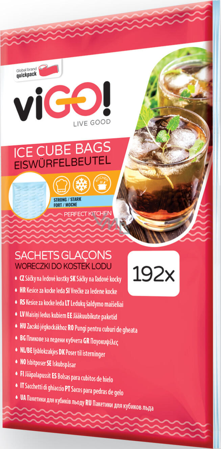 Praktyczne samozamykające się torebki do produkcji lodu w domowych zamrażarkach. Wystarczy napełnić torebkę zimną wodą i włożyć do zamrażarki. W opakowaniu znajduje się 192 torebki na lód.