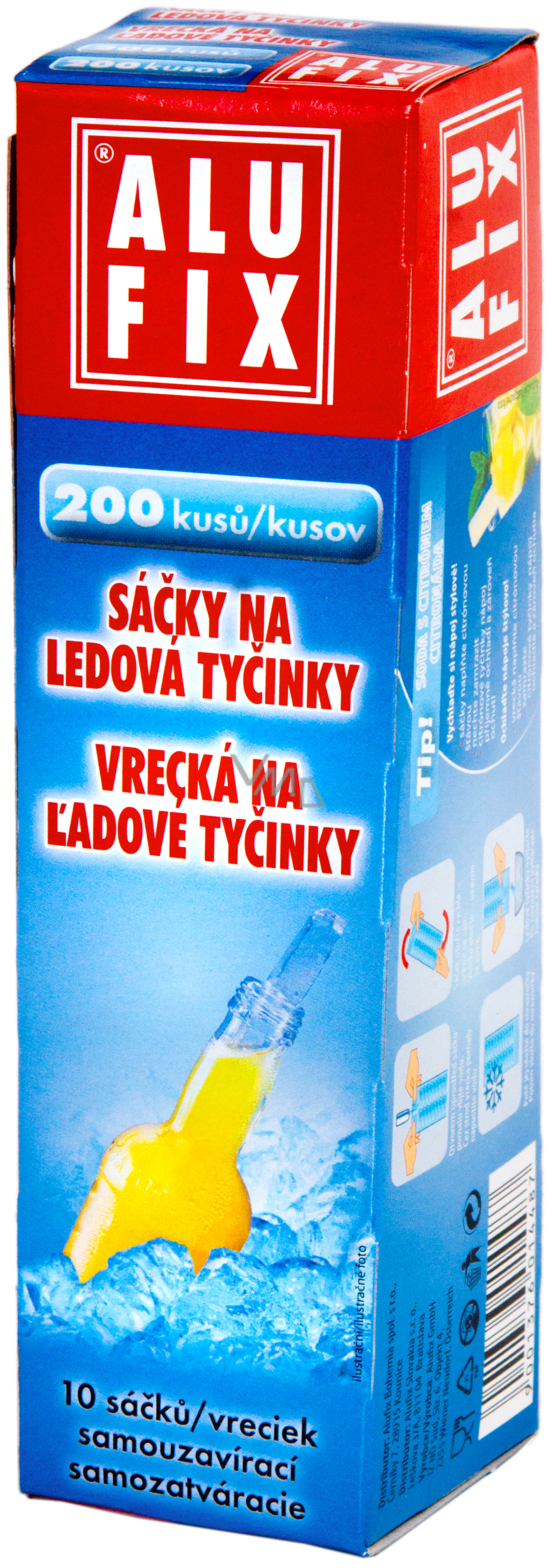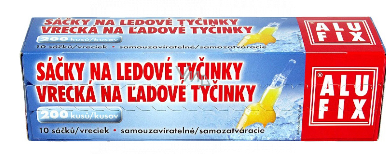 otvorem uprostřed sáčku pomalu vlijte vodu. Sáček otočte rychle - uzavřete se sám. Poté jej uložte do mrazničky. Ledové tyčinky vytlačte.