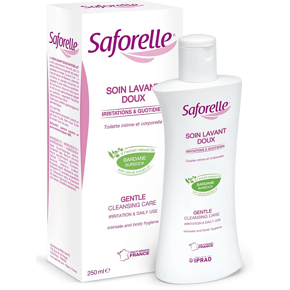 Saforelle gel pro intimní hygienu je jemná čistící péče bez obsahu mýdla. Obsahuje rostlinný extrakt z lopuchu většího, který je znám pro své zklidňující a protisvědivé účinky. Saforelle gel pro intimní hygienu je čistící roztok bez mýdla, s mírně alkalickým pH, určený pro tělesnou hygienu, který zmírňuje a zklidňuje podráždění.