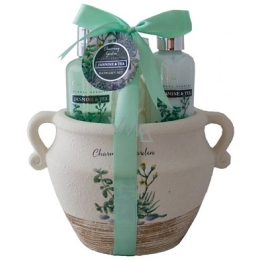 Salsa Collection Marakuja a Grep sprchový gel 90 ml + tělové mléko 90 ml + růže do koupele 3 x 3 g, kosmetická sada v keramickém květináči