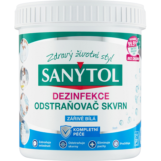 Zabija 99,9 % mikroby, bakterie i pleśnie. Przy praniu skuteczny już przy 20°C. Możliwy do użycia dla białych tekstyliów. Jest praktyczny, ponieważ nadaje się zarówno do prania ręcznego, jak i prania w pralce. Jego skład jest wzbogacony o środki wybielające, które usuwają szary odcień. Świeży zapach. Nie odbarwia.
