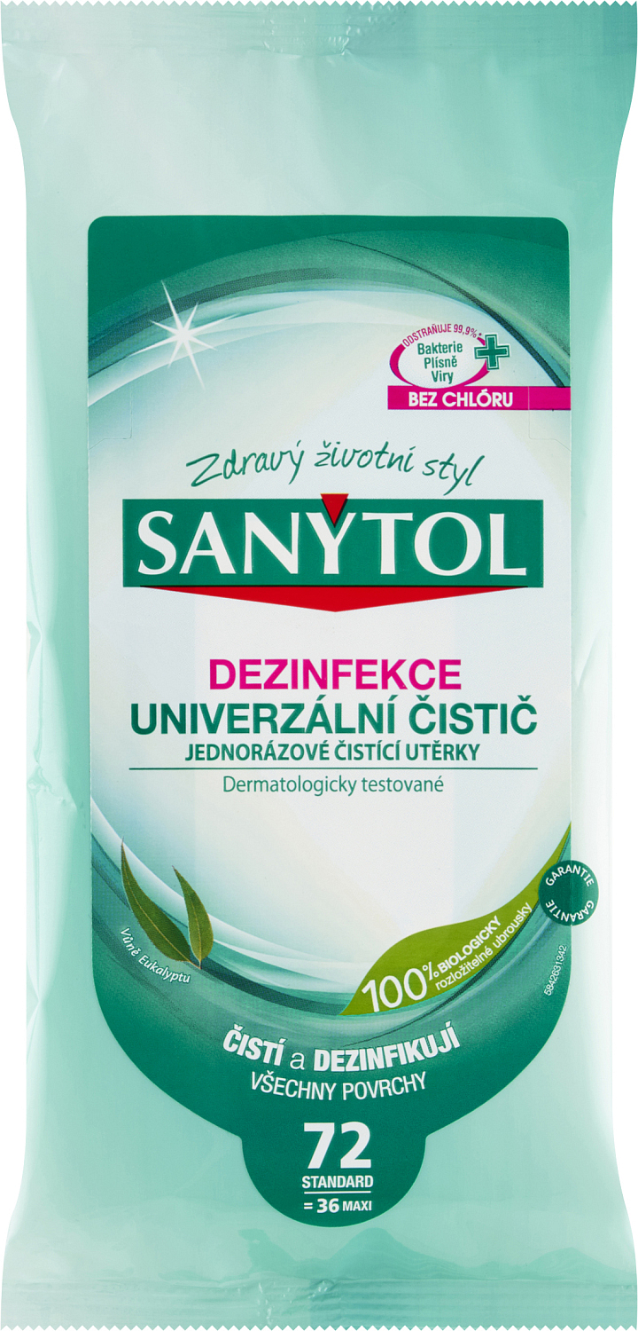 Sanytol Dezynfekcja uniwersalny środek czyszczący - ściereczki czyszczą i dezynfekują powierzchnie. Dzięki profilaktycznemu i regularnemu stosowaniu można kontrolować i regulować występowanie mikroorganizmów w domu.