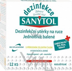 Utěrky napuštěné hydroalkoholovým gelem jsou ideální pro udržení čistých a zdravých rukou po celý den za jakékoliv situace (v kanceláři, veřejném dopravním prostředku, autě, veřejných místech, apod.). Vzhledem k malému formátu - vhodný do kapsy - utěrky Sanytol, které jsou hermeticky uzavřeny v individuálních sáčcích, můžeme nosit stále všude při sobě (kapsy, kabelky, aktovky, apod.). Díky extraktu ze zeleného čaje a obsahu glycerinu zanechají ruce jemné, svěží a příjemně parfemované.