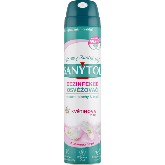 SANYTOL wyczyści powietrze i zdezynfekuje powierzchnie w jednym kroku. Jego skład zapewnia doskonałą higienę i pozostawia przyjemny, świeży zapach. Zlikwiduje 99,9% bakterii, pleśni i wirusów, w tym wirusa grypy typu A (H1N1).
