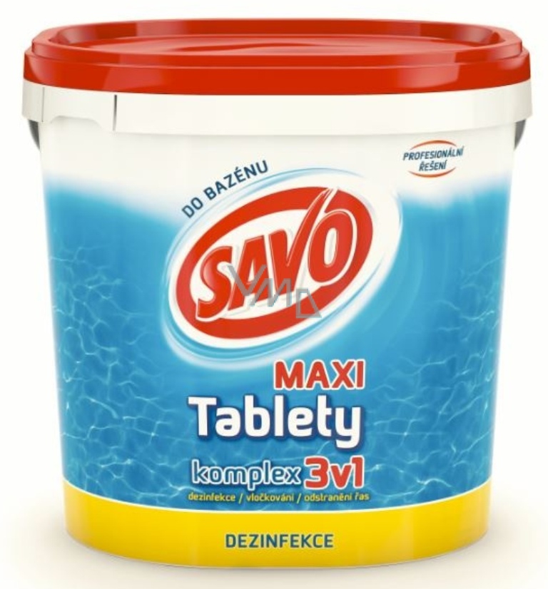 Těm se nejlépe daří právě ve znečištěné vodě a teplotě nad 20°C. Efektivní metodou čištění vody je použití chlorových tablet. Ty mají trvalejší a postupný účinek a jsou vhodné pro celosezónní ošetřování vody v bazénu. Savo nabízí ve svém portfoliu tři alternativy podle objemu bazénu, pro který jsou tablety určené – 20 g Chlorové Tablety Mini, kdy 1 – 2 tablety vyčistí za 6 - 8 dní 2 – 3 metry krychlové vody, 200 g Chlorové Tablety Maxi, které ve stejném množství a čase účinně vydezinfikují 20 – 30 metrů krychlových vody. Malé i velké tablety existují i ve vylepšené formě s přidaným účinkem vyvločkování i drobných nečistot.
