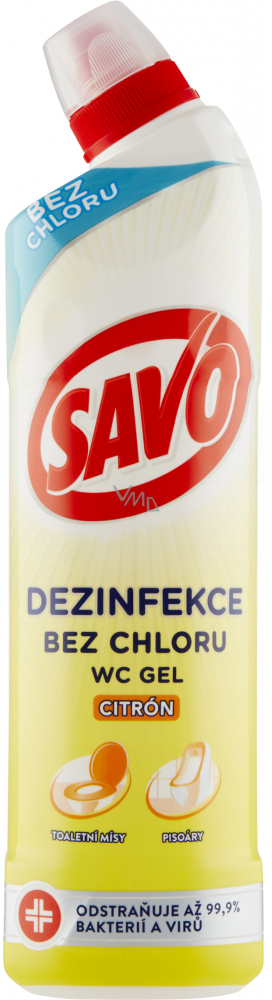 Savo WC čistič Citron je osvědčený prostředek s mohutnou čistící a dezinfekční silou a svěží vůní citronu. Spolehlivě likviduje bakterie, viry i mikroskopické houby stejně jako špínu, usazeniny a nečistoty na těžko dostupných místech. Udržuje vaši toaletu zářivě lesklou, provoněnou a hygienicky čistou po dlouhou dobu. Vhodný pro použití i na ostatní sanitární keramiku.. Vůně citronu zanechá vaši toaletu svěží po dlouhou dobu.