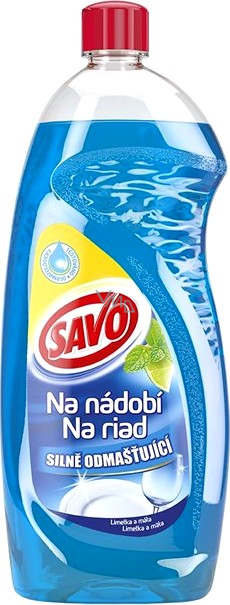 Přípravek na mytí nádobí s vůní limetky a máty. Rychlé a účinné odmaštění. Pomáhá zachovat houbičku hygienicky čistou. Savo Na nádobí se díky obsahu citronové šťávy vyznačuje nekompromisní odmašťovací silou (odstraní mastnotu i z plastového nádobí).