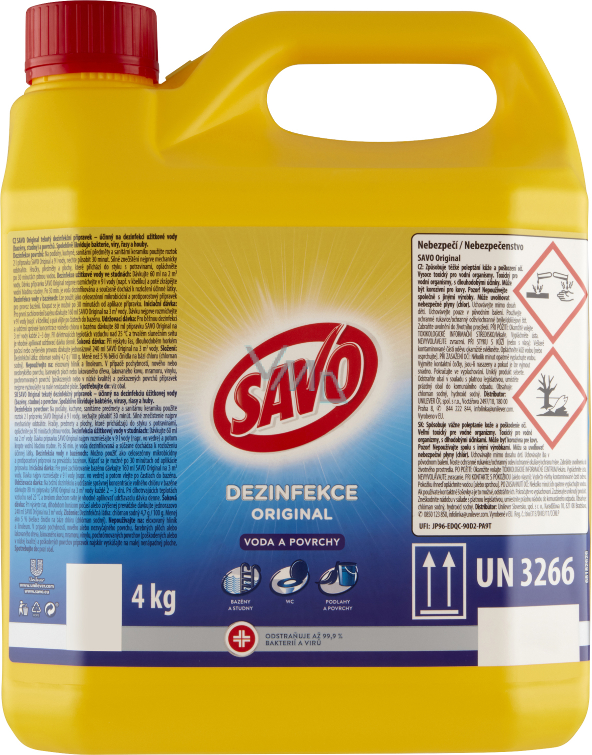 Na podłogi, kuchnie, przedmioty sanitarne i ceramikę sanitarną użyj roztworu 2 l preparatu Savo Original i 9 l wody, pozostaw do działania 30 minut. Silne zanieczyszczenia najpierw mechanicznie usuń. Zabawki, przedmioty i powierzchnie, które mają kontakt z żywnością, spłucz po 30 minutach wodą pitną.