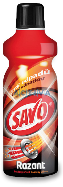 Savo Razant je vysoce účinný gelový tekutý prostředek se zesíleným účinkem na uvolnění ucpaných odpadů a na odstranění nepříjemného zápachu z nich. Je vhodný také pro preventivní čištění odpadů, protože působí svým složením proti tvorbě nových usazenin.