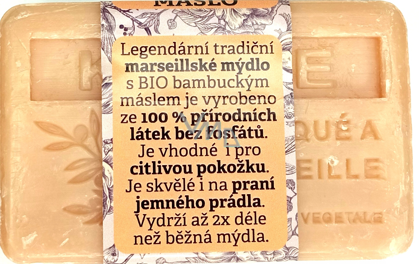 Toto provensálské jemné a velmi účinné mýdlo je vyrobeno pouze z přírodních látek bez fosfátů.