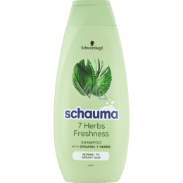 Receptura s výtažky ze 7 bylin posiluje vlasy a dodává jim lehkou svěžest. Pro svěží a pěstěné vlasy s přirozeným objemem. Prokázaná účinnost: Schauma s intenzivně posilujícím proteinem dodává vlasům ztracené látky a posiluje oslabené části vlasů. Pro 100% sílu a 100% lesk.