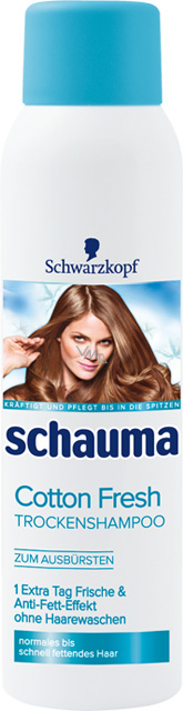 Suchý šampon Schauma Cotton Fresh dodá vlasům svěžest až na 24 hodin! Snad každému z nás se občas přihodí, že nemá čas nebo možnost umýt si vlasy. Jenže jak zařídit, abychom přesto vypadali krásně a upraveně? Naštěstí je tu rychlá pomoc v podobě přípravků vlasové kosmetiky Schauma Cotton Fresh, která byla vyvinuta speciálně pro rychle se mastící vlasy.