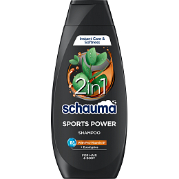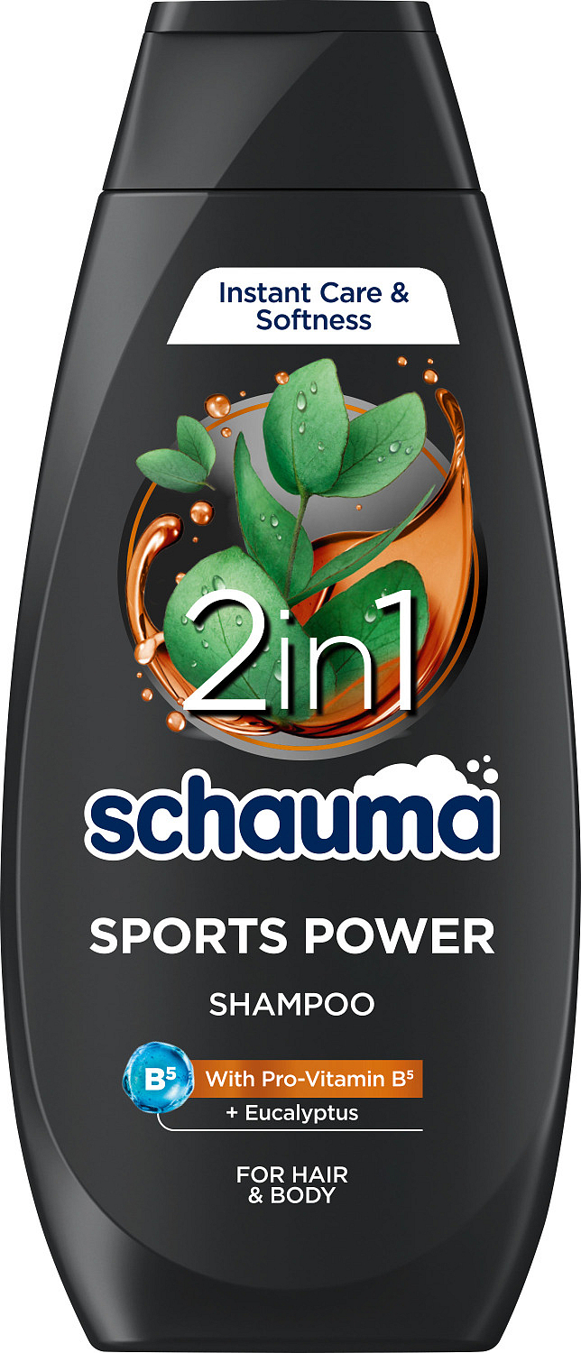 Schauma Men Sports wzmacniający szampon do włosów. Receptura z L-karnityną i białkiem natychmiast wzmacnia włosy. Dla 100% siły i ekstremalnej świeżości. Receptura z intensywnie pielęgnującym białkiem przywraca włosom utracone proteiny