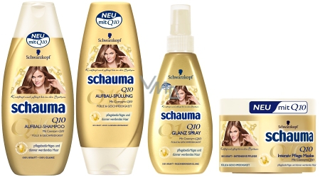 Schauma z řady Q10 obnovuje tvorbu Keratinu, regeneruje vaše vlasy a dodává jim tvar a pružnost. Zdravé a objemné vlasy jsou symbolem sily, mladosti a atraktivity. To je důvod, proč tolik žen sní o vlasech plných objemu. Keratin je základní stavební složkou vlasového vlákna, s přibývajícím věkem však tvorba Keratinu klesá a vlasy slábnou.