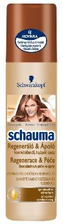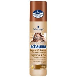 Bezoplachová péče ve spreji pro suché a namáhané vlasy. Schauma Regenerace & Péče s bambuckým máslem a výtažkem z kokosu regeneruje suché a namáhané vlasy. Pro okamžité snadné rozčesávání a regeneraci vlasů.