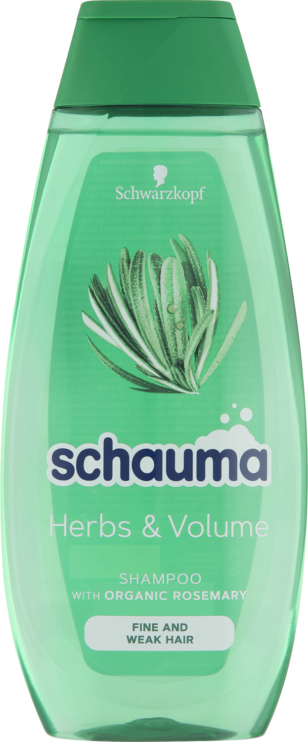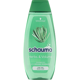 Szampon Schauma Herbs & Volume z organicznym ekstraktem z rozmarynu dla delikatnych i słabych włosów. Dodaje włosom świeżości i siły, aby zyskały objętość. Ciesz się moim wegańskim składem z organicznym ekstraktem z rozmarynu.