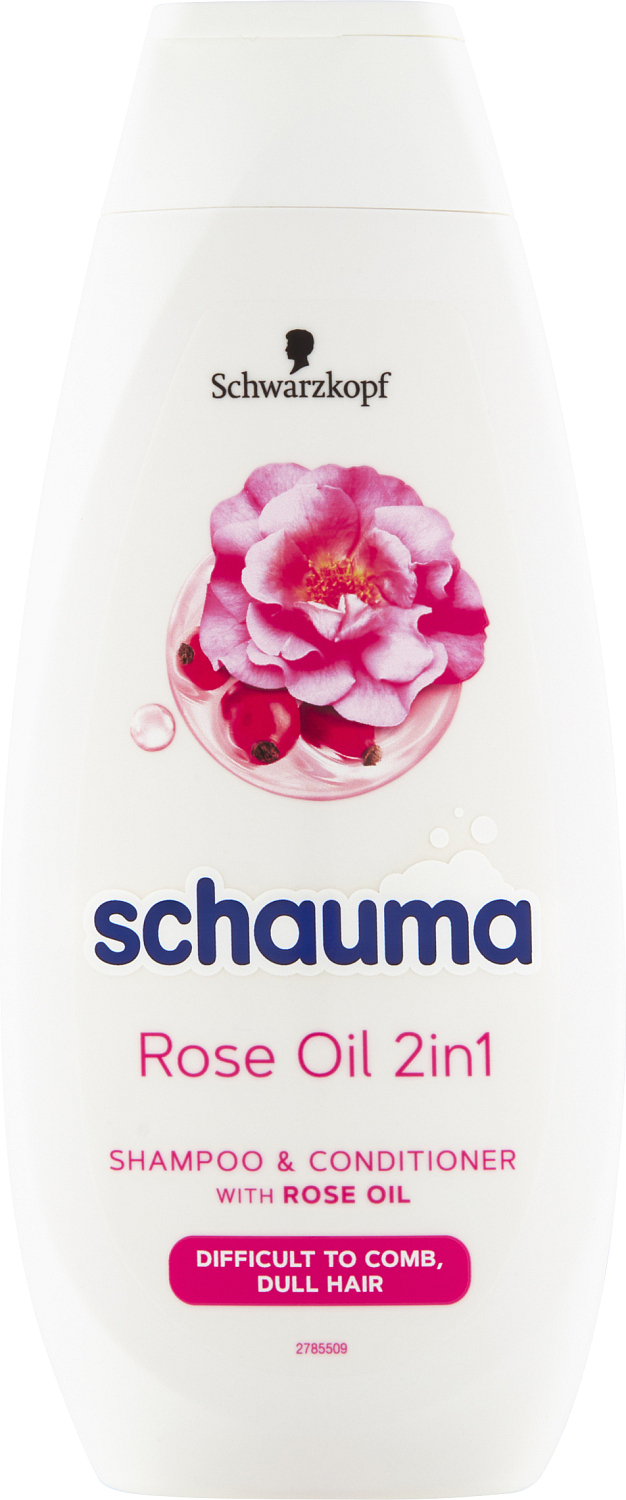 Schauma szampon i odżywka 2w1 z olejem różanym dla trudnych do rozczesania włosów bez blasku. Dba i rozplątuje, aby uzyskać efekt delikatnych i lśniących włosów.