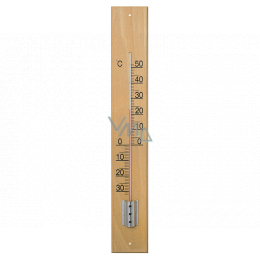 Venkovní teploměr slouží pro měření aktuální teploty vzduchu. Tělo má vyrobeno z bukového dřeva, rozměr 490 x 85 mm. Je určen především pro užití v exteriéru