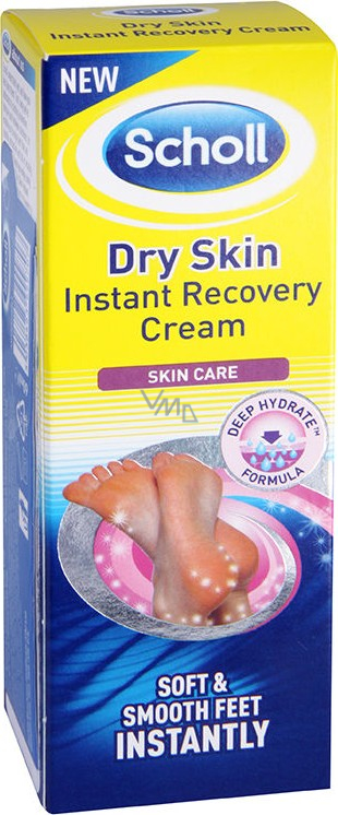 Intenzivní hydratační krém na chodidla. Je moje pokožka suchá? Pokud kůže na nohou ztrácí vlhkost, dojde k poškození, stává se hrubá a šupinatá - což může vypadat nepěkně. Suchá kůže může být na dotek hrubá a drsná. Proč je Scholl krém pro suchou pokožku jiný? Odborníci v Scholl vyvinuli speciální krém pro péči o pokožku na nohou - krém pro suchou pokožku. Obsahuje inovativní formuli Deep Hydrate, která pomáhá odlupovat suché kožní buňky a tak umožňuje speciální posilovací vlhkosti proniknout hluboko do pokožky a podporovat účinnou hladinu vlhkosti zevnitř. Výsledkem je okamžité obnovení a jemnější zvláčňující vzhled pokožky.