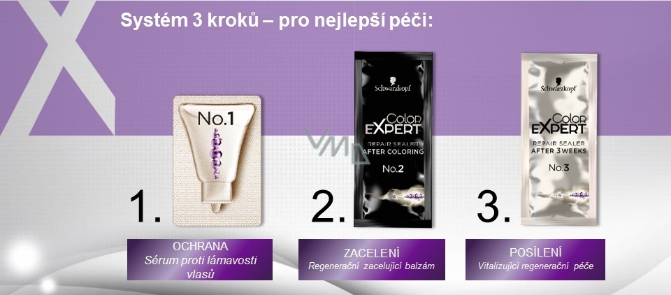 - N°2 Po barvení uzavírá vlasové vlákno pomocí regeneračního zacelujícího balzámu (N°2).