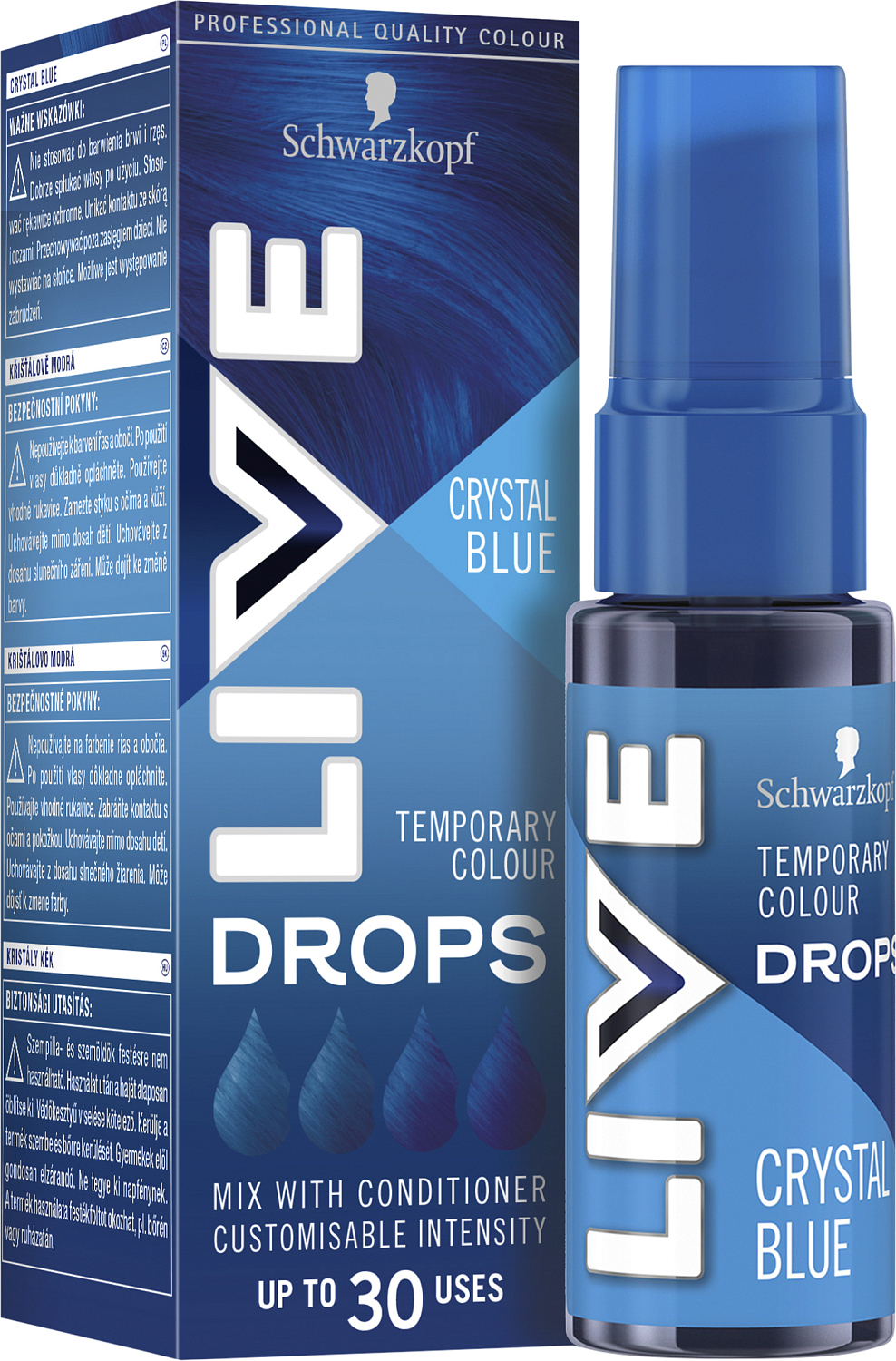 Od pastelowego po jaskrawy - bądź kreatywny i zdecyduj, w jakim kolorze zaiskrzysz! Wysoko pigmentowane krople farbujące Schwarzkopf Live Drops to seria tymczasowych kolorów do włosów, dzięki którym stworzysz unikalny odcień koloru według swojego stylu. Łatwo i szybko w 5 minut. Wystarczy wymieszać z ulubionym balsamem do włosów i dostosować intensywność koloru - im więcej kropli (dawek z pompki), tym intensywniejszy wynik kolorystyczny. Wybierz jeden z dostępnych odcieni lub mieszaj odcienie Live Drops ze sobą i stwórz swój własny.