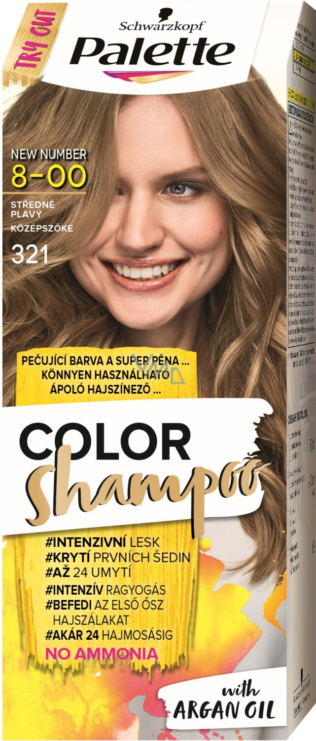 Specjalna receptura bez amoniaku wzbogacona o olej arganowy dba o Twoje włosy już podczas farbowania od korzeni aż po końce. Unikalne połączenie kremu koloryzującego i aktywatora o niskim stężeniu, oprócz odcieni 320, 315, 321, 308, 317, (3 %) pozwala, by Palette Color Shampoo był znacznie delikatniejszy w porównaniu z innymi bardziej skoncentrowanymi aktywatorami (6 % i więcej). Podobnie specjalne pigmenty barwne zawarte w recepturze nadadzą Twoim włosom doskonały kolor. Efekt naturalnie wyrazistych, zdrowo wyglądających włosów z wzmocnionym blaskiem.