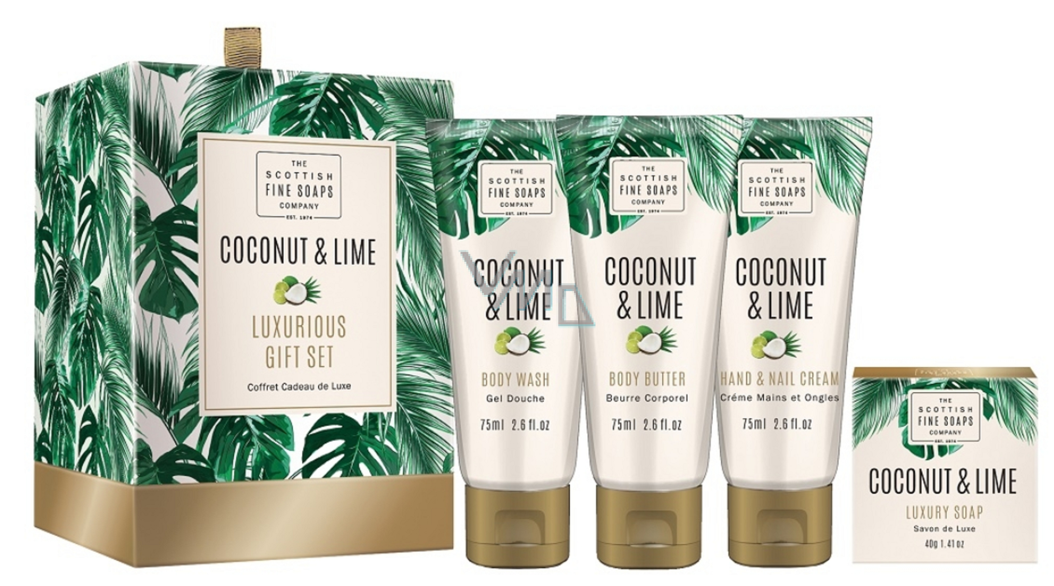 Scottish Fine Soaps Kokos a Limetka sprchový gel 75 ml + tělové máslo 75 ml + krém na ruce a nehty 75 ml + mýdlo 40 g, kosmetická sada