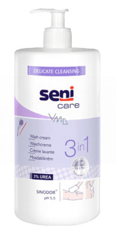 Seni Care 3v1 Mycí tělový bezoplachový krém Ph 5,5, 3% Urea 1000 ml dávkovač