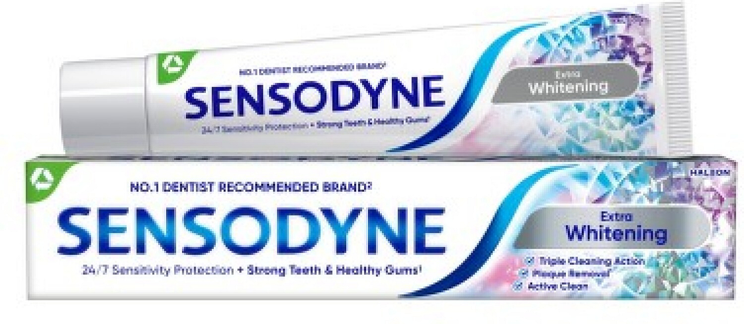 Uzyskaj piękny uśmiech bez bólu! Sensodyne Extra Whitening 75 ml został specjalnie opracowany jako pasta do zębów dla wrażliwych zębów, która jednocześnie pomaga usuwać plamy i przywraca naturalną biel twojego szkliwa.