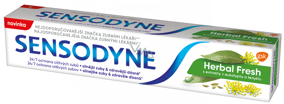 Nowy Sensodyne Herbal Fresh będzie dla Ciebie właściwym wyborem. Oferuje kombinację klinicznie potwierdzonych substancji czynnych na ulgę od bólu i ekstraktów z ziół pochodzących z zrównoważonych źródeł - zawiera eukaliptus razem z olejkami eterycznymi z Kopru. Przy codziennym stosowaniu zapewni ochronę wrażliwych zębów, mocniejsze zęby i zdrowsze dziąsła.