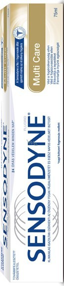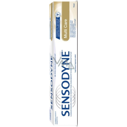 Sensodyne Multi Care zubní pasta - vylepšené složení chrání před citlivostí zubů 24 hodin denně, 7 dní v týdnu. Obsahuje antibakteriální účinnou látku, která při pravidelném použití 2x denně pomáhá udržovat zdravé dásně. Má svěží mátovou příchuť.