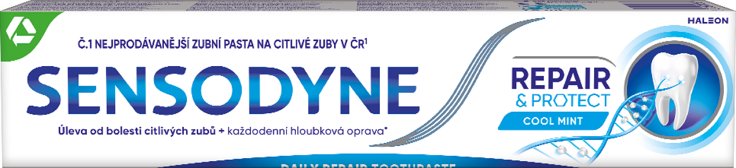 Podczas mycia zębów dwa razy dziennie pasta do zębów Sensodyne Repair & Protect może naprawić wrażliwe zęby dzięki długotrwałej ochronie przed nadwrażliwością. Jej składnik aktywny, NovaMin, tworzy ochronną warstwę na wrażliwych miejscach Twoich zębów i chroni je przed bólem. Sensodyne Repair & Protect zapewnia skuteczną długotrwałą ulgę od przeszywającego bólu spowodowanego nadwrażliwością oraz oferuje codzienną ochronę przed próchnicą.