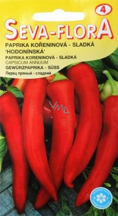 Paprika kořeninová sladká polní paprika pro sklizeň v botanické zralosti tj. barva plodu je tmavočervená, chuť sladká nepálivá. Používáme ji jako koření. Spon: 60 x 30 cm po 2 rostlinách. Sladká kořeninová polní paprika určená pro sušení a mletí. Rostlina středně vysoká s tmavozeleným listem.