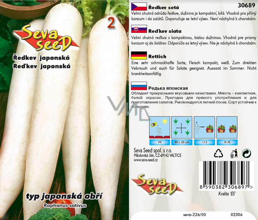 Velmi chutná odrůda ředkve. Její dužina je kompaktní, bílá. Je vhodná pro přímý konzum i do salátů. Doporučuje se letní výsev a není náchylná k chorobám.