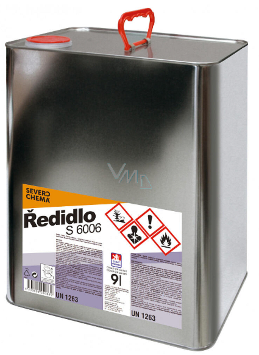 Ředidlo S-6006 je směs organických rozpouštědel: Uhlovodíky, C9-C12, n-alkany, isoalkany, cyklické, aromáty (2-25 %) (REACH 01-2119458049-33-0004), toluen (REACH 01-2119471310-51-xxxx), isomery xylenu (REACH 01-2119458049-33-0004).