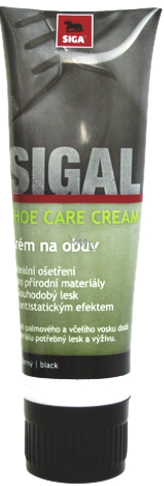 Sigal krém na obuv. Vyživující a zvláčňující krém pro hladké přírodní materiály s obsahem včelího a palmového vosku. Prevence před popraskání. Přirozený lesk a ochrana před vlhkostí.