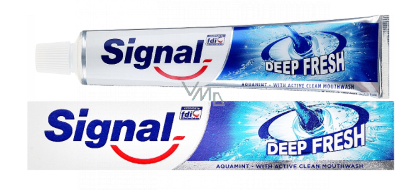 Průhledná zubní pasta s technologií core & core ™ v podobě modrého antibakteriálního gelu s ústní vodou pro efektivní ochranu proti zubnímu kazu zaručuje dvojí efekt: antibakteriální účinek a navíc extra svěžest s příchutí mentolu a eukalyptu. Zubní pasta Signal Deep Fresh Aqua Mint pro svěží dech je určena pro každodenní péči o váš chrup a dásně. Dokonale zuby vyčistí a ochrání je před zubním plakem a zubními kazy.