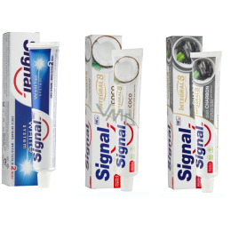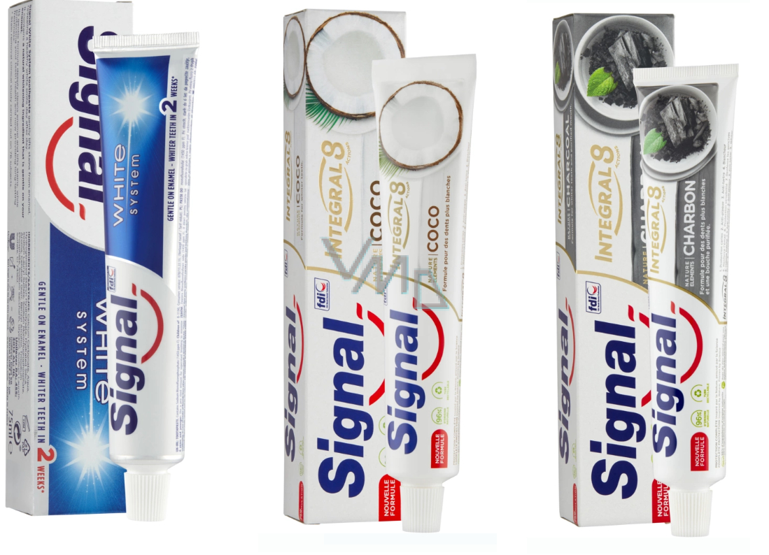 Zubní pasta Signal White System nejen rozzáří váš úsměv, ale také pomáhá aktivně posilovat zubní sklovinu. Její složení obsahující fluor a kalcium napomáhá remineralizaci zubní skloviny a speciální komplex White Activator™ s látkou používanou v profesionálním čištění účinně vybělí vaše zuby a napomůže také jejich přirozenou bělost udržet.