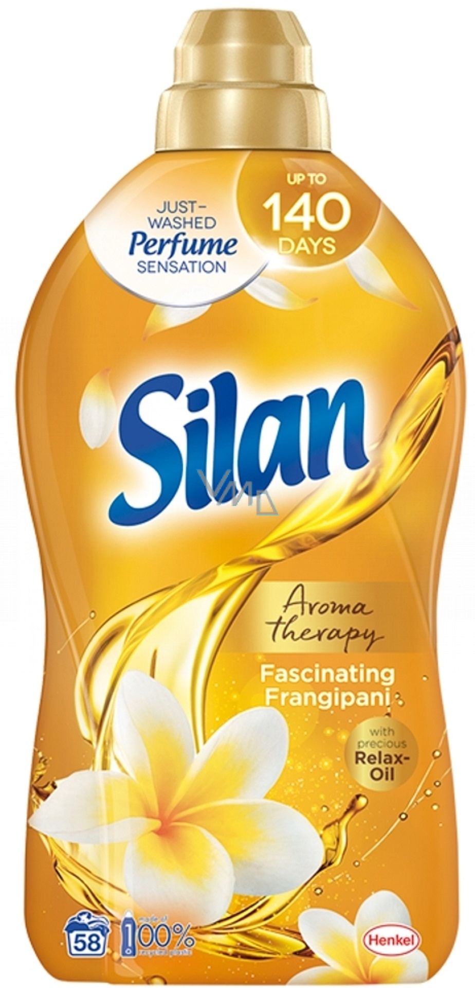 Aviváž Silan Fascinating Frangipani změkčuje vaše prádlo a dodává mu svěží dlouhotrvající vůni. Silan Aromatherapy Fascinating Frangipani vám dopřeje jedinečný zážitek, po kterém vaše smysly touží. Aviváž se vzácnými esenciálními oleji zahalí vaše oblečení do okouzlující vůně, která vydrží až 140 dní, díky intenzivní dlouhotrvající směsi vonných esencí. Unikátní parfémové kapsle Silan duo-cap jsou aktivovány při každém pohybu a uvolňují tak ještě více vůně i během nošení.