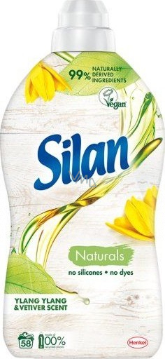 Silan aviváž Naturals Ylang Ylang & Vetiver Scent je koncentrovaný avivážní prostředek na textilie. Složení obsahuje 99 % složek přírodního původu a neobsahuje silikony, barviva ani mikroplasty. Parfém je biologicky odbouratelný. Silan Naturals Ylang poskytuje vašemu prádlu neodolatelnou hebkost a jedinečnou vůni.