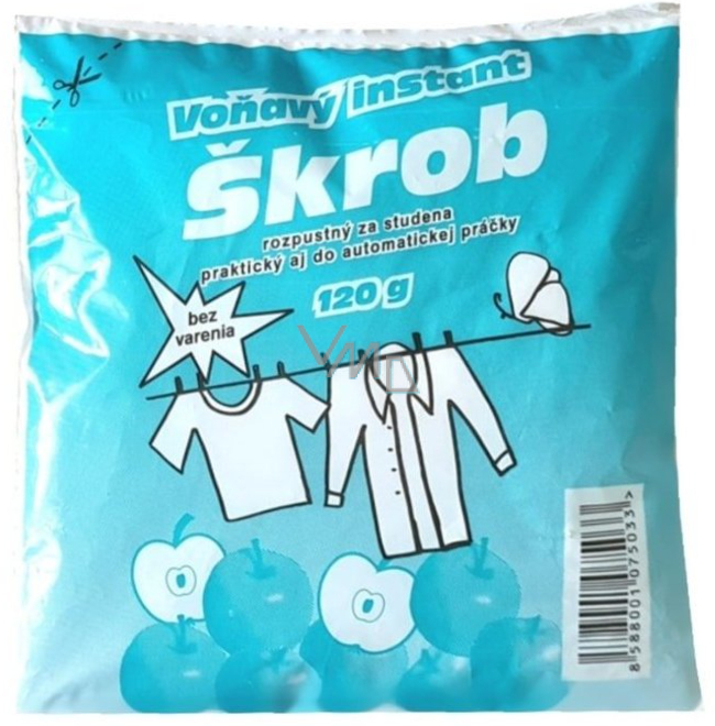Skrob do prania rozpuszczalny na zimno odpowiedni również do automatycznych pralek. Jego dużą zaletą jest łatwe przygotowanie i przyjemne natłuszczenie tkanin.