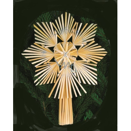 Slaměná špice na stromeček Hvězda s glitrem 26 cm