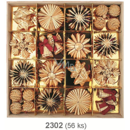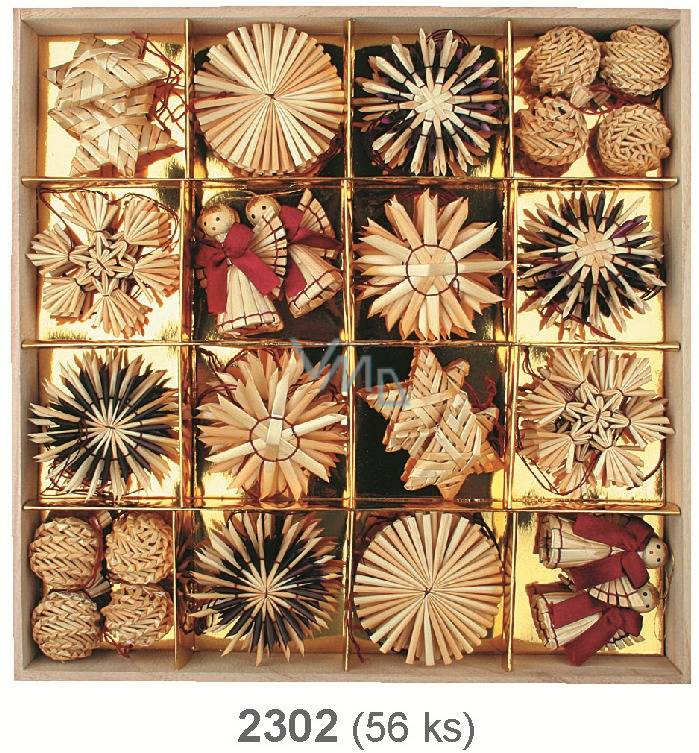 Slaměné dekorace v dřevěné krabičce s vínovým dekorem 56 ks
