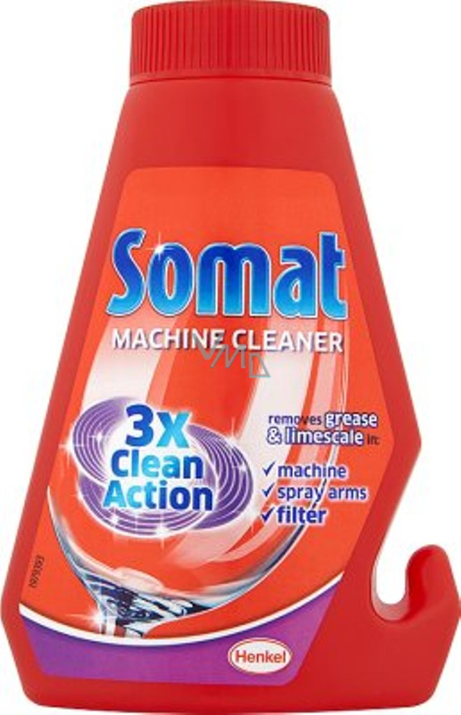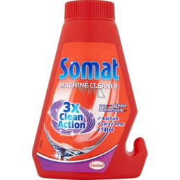 Somat intensywny środek czyszczący do zmywarki usuwa tłuszcz, kamień wodny i czyści ważne części zmywarki, takie jak ramiona spryskujące i filtry. Przy regularnym stosowaniu (raz na 3 miesiące) można wydłużyć żywotność Twojej zmywarki. Praktyczna butelka Somat z haczykiem jest odpowiednia dla wszystkich zmywarek. Podczas używania środka czyszczącego do zmywarki proszę nie dodawać środka do naczyń ani nie pozostawiać naczyń w zmywarce. Po upływie terminu ważności utylizować jak odpady komunalne.