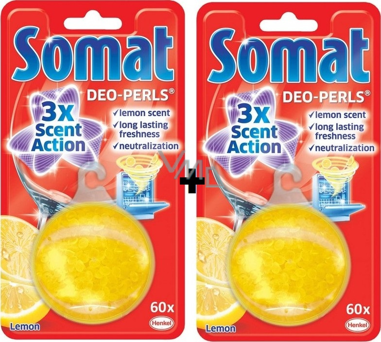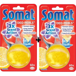 Somat Deo-Perls Citrón a Pomeranč přináší dlouhotrvající svěžest a neutralizaci pachů. Somat deodorant do myčky obsahuje unikátní technologii Deo Perls, která umožňuje průběžné uvolňování osvěžující citronové a pomerančové vůně, takže vaše myčka bude stále voňavá. Vydrží cca 60 mycích cyklů.