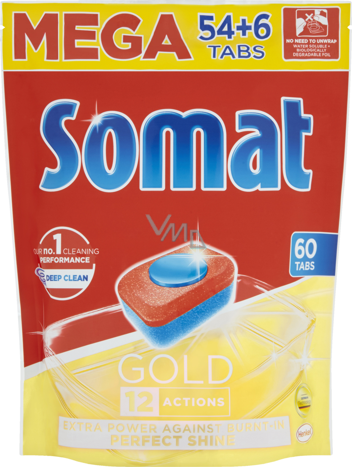 Somat Gold je nejlepší proti připáleninám. Navíc, díky efektu odmáčení pomáhá odstranit i odolné nečistoty bez předmytí. Je účinný proti skvrnám od čaje i kávy a poskytne perfektní výsledky mytí již při 40 °C.