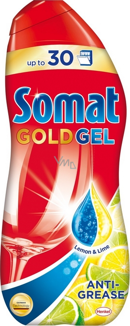 - Somat Gold Gel Anti-Grease s vůní Lemon & Lime je obohacen o sílu kyseliny citronové a podle nařízení EU neobsahuje fosfáty.